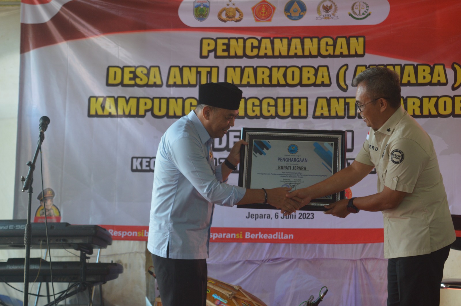 Penganugerahan tersebut diserahkan oleh Kepala BNN Provinsi Jateng Brigjen Pol. Heru Pranoto, Selasa (6/6/2023). Itu saat dia menghadiri pencanangan Desa Kecapi, Kecamatan Tahunan, sebagai Desa Antinarkoba (Annaba). Penghargaan ini diterima langsung Pj. Bupati Jepara, dan disaksikan jajaran Forkopimda, pimpinan perangkat daerah, hingga para relawan.
